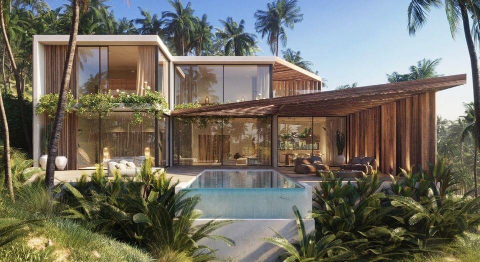 Accommodation of 65m², with separate double bedroom, spacious living room with integrated open plan kitchen, bathroom and with large garden and views to the pool.
